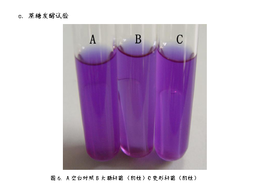 3、 將普通變形桿菌接種到生理生化檢測培養(yǎng)基中,37℃培養(yǎng)48h。檢測菌種生理生化特性。