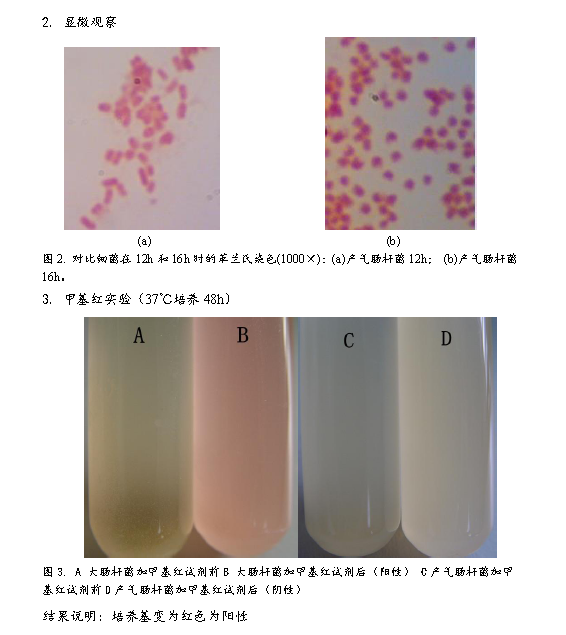 2、 將產氣腸桿菌細菌在NA斜面置于37℃培養,斜面生長至12h時,取菌進行革蘭氏染色,油鏡鏡檢。斜面繼續培養至16h時,同樣,取菌鏡檢。