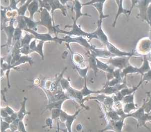如果細胞密度達80%-90%,即可進行傳代培養。1. 棄去培養上清,用不含鈣、鎂離子的PBS潤洗細胞1-2次。2. 加2ml消化液(0.25%Trypsin-0.53mM EDTA)于培養瓶中,置于37℃培養箱中消化1-2分鐘,然后在顯微鏡下觀察細胞消化情況,若細胞大部分變圓并脫落,迅速拿回操作臺,輕敲幾下培養瓶后加少量培養基終止消化。3. 按6-8ml/瓶補加培養基,輕輕打勻后吸出,在1000RPM條件下離心4分鐘,棄去上清液,補加1-2mL培養液后吹勻。4. 將細胞懸液按1:2到1:5的比例分到新的含8ml培養基的新皿中或者瓶中。 |