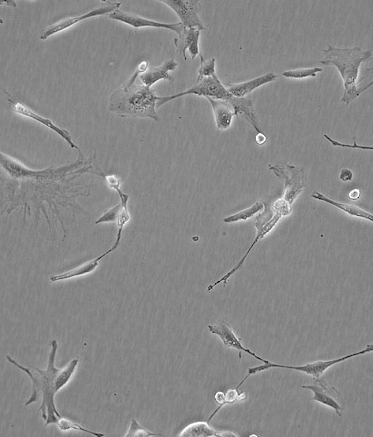 如果細胞密度達80%-90%,即可進行傳代培養。1. 棄去培養上清,用不含鈣、鎂離子的PBS潤洗細胞1-2次。2. 加2ml消化液(0.25%Trypsin-0.53mM EDTA)于培養瓶中,置于37℃培養箱中消化1-2分鐘,然后在顯微鏡下觀察細胞消化情況,若細胞大部分變圓并脫落,迅速拿回操作臺,輕敲幾下培養瓶后加少量培養基終止消化。3. 按6-8ml/瓶補加培養基,輕輕打勻后吸出,在1000RPM條件下離心4分鐘,棄去上清液,補加1-2mL培養液后吹勻。4. 將細胞懸液按1:2到1:5的比例分到新的含8ml培養基的新皿中或者瓶中。 |