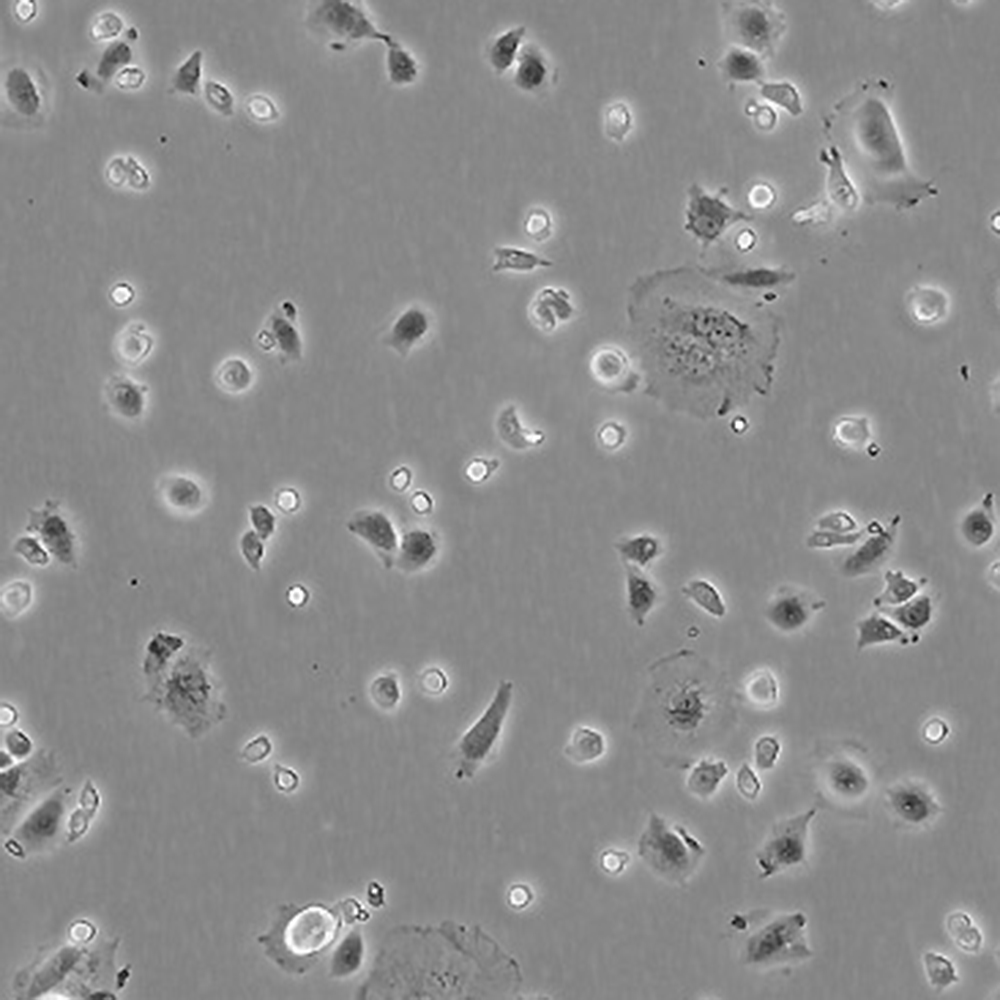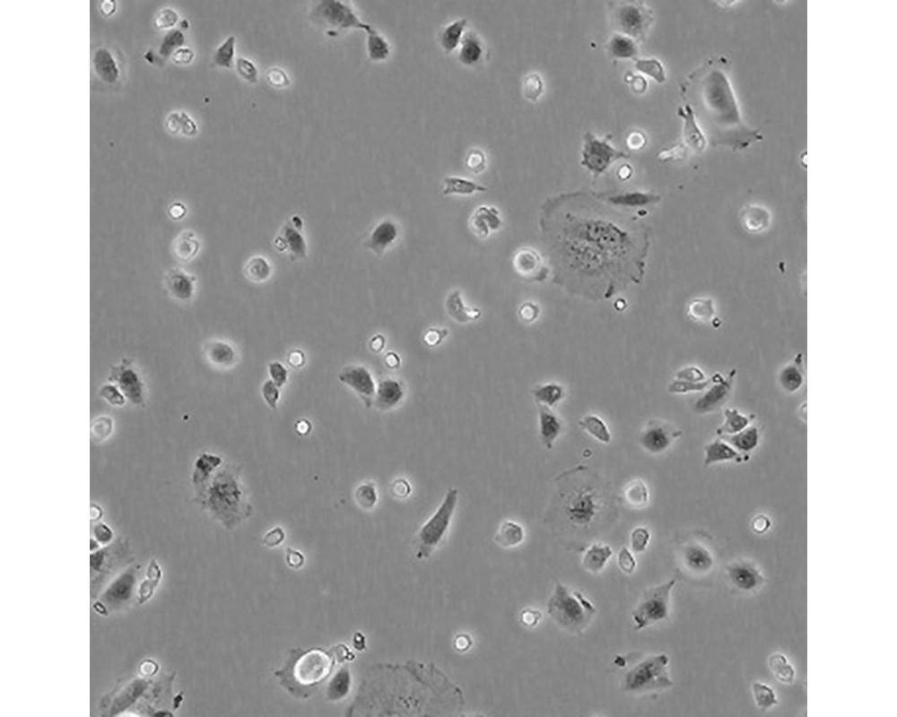 如果細胞密度達80%-90%,即可進行傳代培養。1. 棄去培養上清,用不含鈣、鎂離子的PBS潤洗細胞1-2次。2. 加2ml消化液(0.25%Trypsin-0.53mM EDTA)于培養瓶中,置于37℃培養箱中消化1-2分鐘,然后在顯微鏡下觀察細胞消化情況,若細胞大部分變圓并脫落,迅速拿回操作臺,輕敲幾下培養瓶后加少量培養基終止消化。3. 按6-8ml/瓶補加培養基,輕輕打勻后吸出,在1000RPM條件下離心4分鐘,棄去上清液,補加1-2mL培養液后吹勻。4. 將細胞懸液按1:2到1:5的比例分到新的含8ml培養基的新皿中或者瓶中。 |