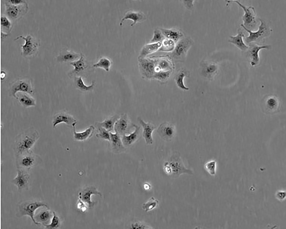如果細胞密度達80%-90%,即可進行傳代培養。1. 棄去培養上清,用不含鈣、鎂離子的PBS潤洗細胞1-2次。2. 加2ml消化液(0.25%Trypsin-0.53mM EDTA)于培養瓶中,置于37℃培養箱中消化1-2分鐘,然后在顯微鏡下觀察細胞消化情況,若細胞大部分變圓并脫落,迅速拿回操作臺,輕敲幾下培養瓶后加少量培養基終止消化。3. 按6-8ml/瓶補加培養基,輕輕打勻后吸出,在1000RPM條件下離心4分鐘,棄去上清液,補加1-2mL培養液后吹勻。4. 將細胞懸液按1:2到1:5的比例分到新的含8ml培養基的新皿中或者瓶中 |
