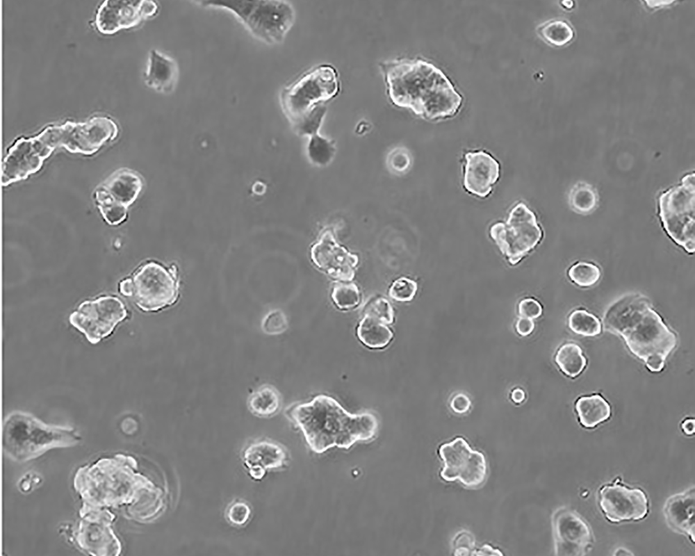如果細胞密度達80%-90%,即可進行傳代培養。1. 棄去培養上清,用不含鈣、鎂離子的PBS潤洗細胞1-2次。2. 加2ml消化液(0.25%Trypsin-0.53mM EDTA)于培養瓶中,置于37℃培養箱中消化1-2分鐘,然后在顯微鏡下觀察細胞消化情況,若細胞大部分變圓并脫落,迅速拿回操作臺,輕敲幾下培養瓶后加少量培養基終止消化。3. 按6-8ml/瓶補加培養基,輕輕打勻后吸出,在1000RPM條件下離心4分鐘,棄去上清液,補加1-2mL培養液后吹勻。4. 將細胞懸液按1:2到1:5的比例分到新的含8ml培養基的新皿中或者瓶中 |