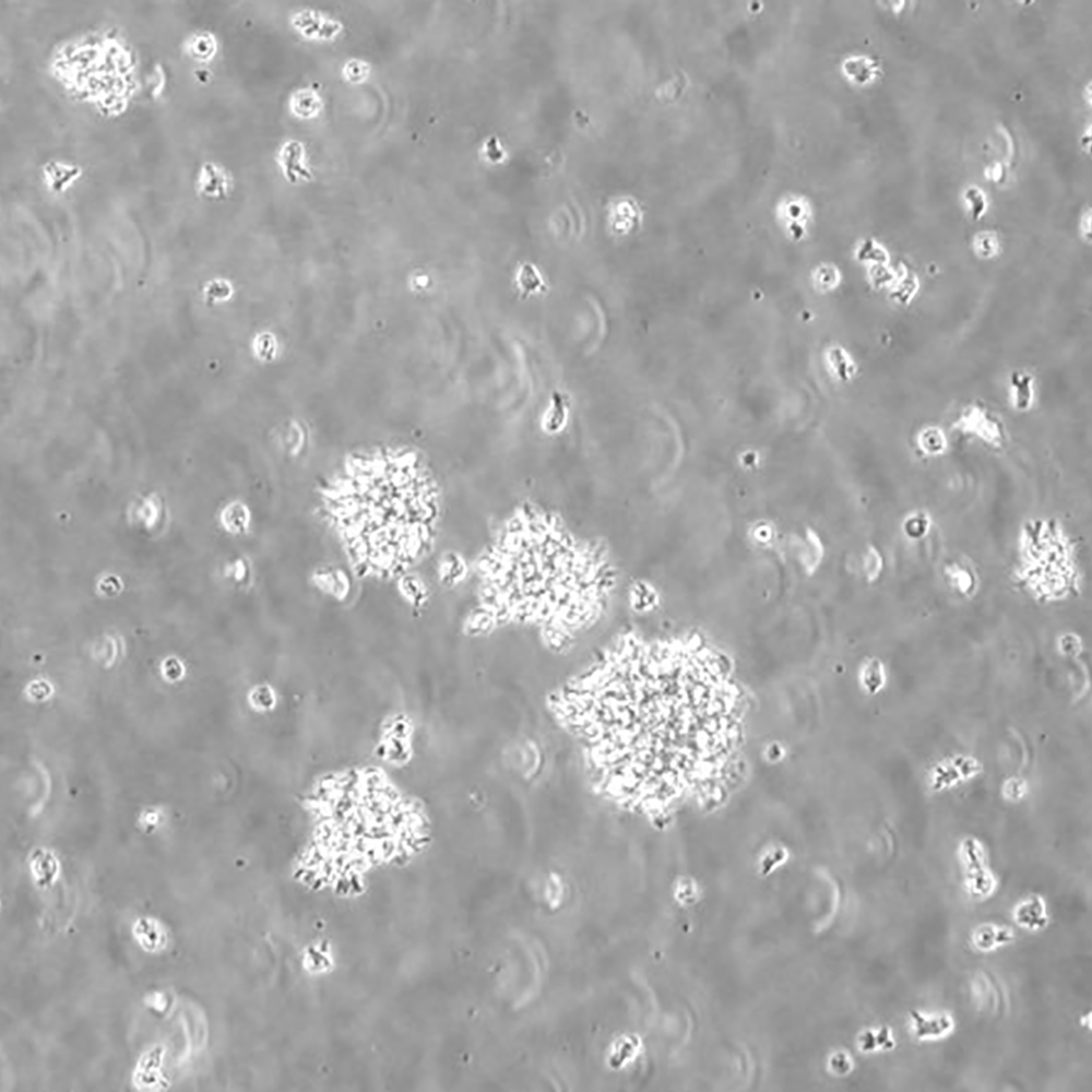 將含有1mL細胞懸液的凍存管在37℃水浴中迅速搖晃解凍,加入4mL培養基混合均勻。在1000RPM條件下離心4分鐘,棄去上清液,補加1-2mL培養基后吹勻。然后將所有細胞懸液加入培養瓶中培養過夜(或將細胞懸液加入10cm皿中,加入約8ml培養基,培養過夜)。第二天換液并檢查細胞密度。 |