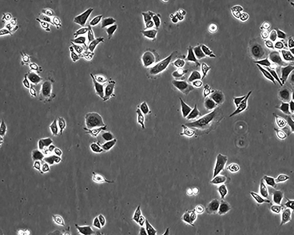 如果細胞密度達80%-90%,即可進行傳代培養。1. 棄去培養上清,用不含鈣、鎂離子的PBS潤洗細胞1-2次。2. 加2ml消化液(0.25%Trypsin-0.53mM EDTA)于培養瓶中,置于37℃培養箱中消化1-2分鐘,然后在顯微鏡下觀察細胞消化情況,若細胞大部分變圓并脫落,迅速拿回操作臺,輕敲幾下培養瓶后加少量培養基終止消化。3. 按6-8ml/瓶補加培養基,輕輕打勻后吸出,在1000RPM條件下離心4分鐘,棄去上清液,補加1-2mL培養液后吹勻。4. 將細胞懸液按1:2到1:5的比例分到新的含8ml培養基的新皿中或者瓶中。 |