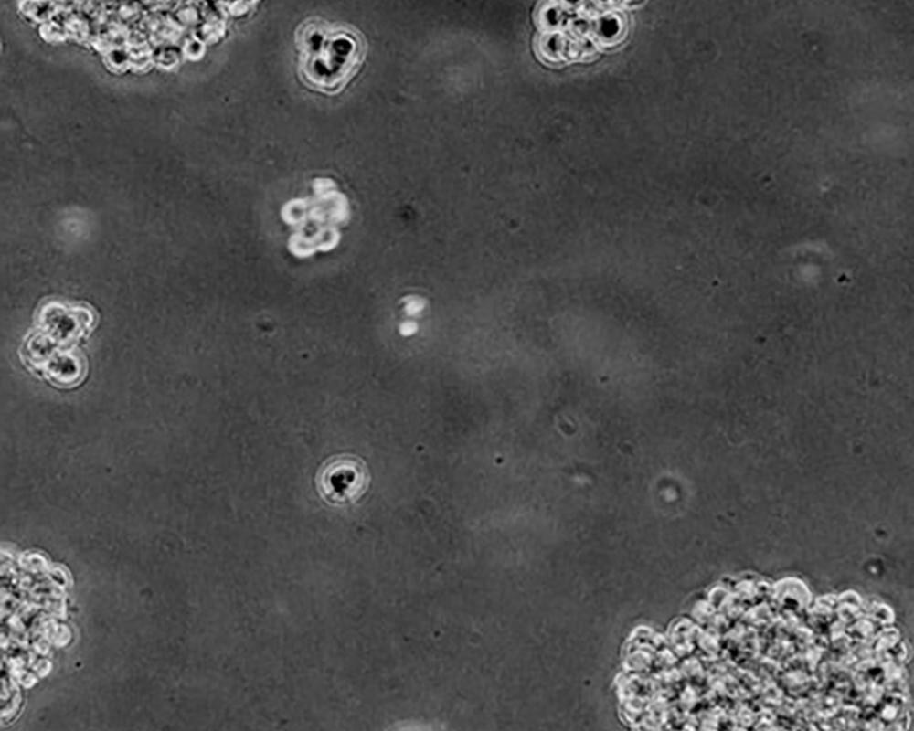 如果細胞密度達80%-90%,即可進行傳代培養。1. 棄去培養上清,用不含鈣、鎂離子的PBS潤洗細胞1-2次。2. 加2ml消化液(0.25%Trypsin-0.53mM EDTA)于培養瓶中,置于37℃培養箱中消化1-2分鐘,然后在顯微鏡下觀察細胞消化情況,若細胞大部分變圓并脫落,迅速拿回操作臺,輕敲幾下培養瓶后加少量培養基終止消化。3. 按6-8ml/瓶補加培養基,輕輕打勻后吸出,在1000RPM條件下離心4分鐘,棄去上清液,補加1-2mL培養液后吹勻。4. 將細胞懸液按1:2到1:5的比例分到新的含8ml培養基的新皿中或者瓶中 |
