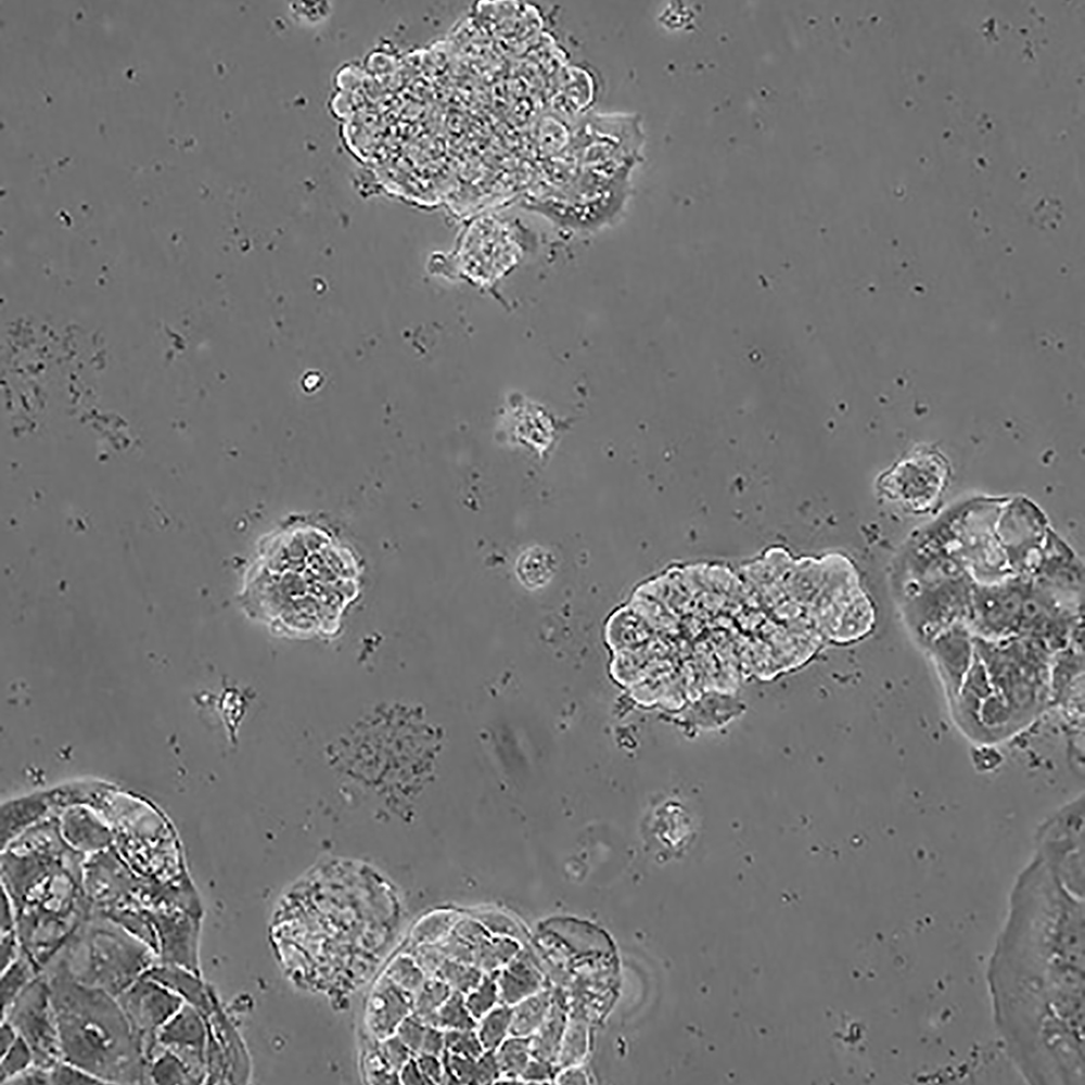 如果細(xì)胞密度達(dá)80%-90%,即可進(jìn)行傳代培養(yǎng)。1. 棄去培養(yǎng)上清,用不含鈣、鎂離子的PBS潤(rùn)洗細(xì)胞1-2次。2. 加2ml消化液(0.25%Trypsin-0.53mM EDTA)于培養(yǎng)瓶中,置于37℃培養(yǎng)箱中消化1-2分鐘,然后在顯微鏡下觀察細(xì)胞消化情況,若細(xì)胞大部分變圓并脫落,迅速拿回操作臺(tái),輕敲幾下培養(yǎng)瓶后加少量培養(yǎng)基終止消化。3. 按6-8ml/瓶補(bǔ)加培養(yǎng)基,輕輕打勻后吸出,在1000RPM條件下離心4分鐘,棄去上清液,補(bǔ)加1-2mL培養(yǎng)液后吹勻。4. 將細(xì)胞懸液按1:2到1:5的比例分到新的含8ml培養(yǎng)基的新皿中或者瓶中。 |