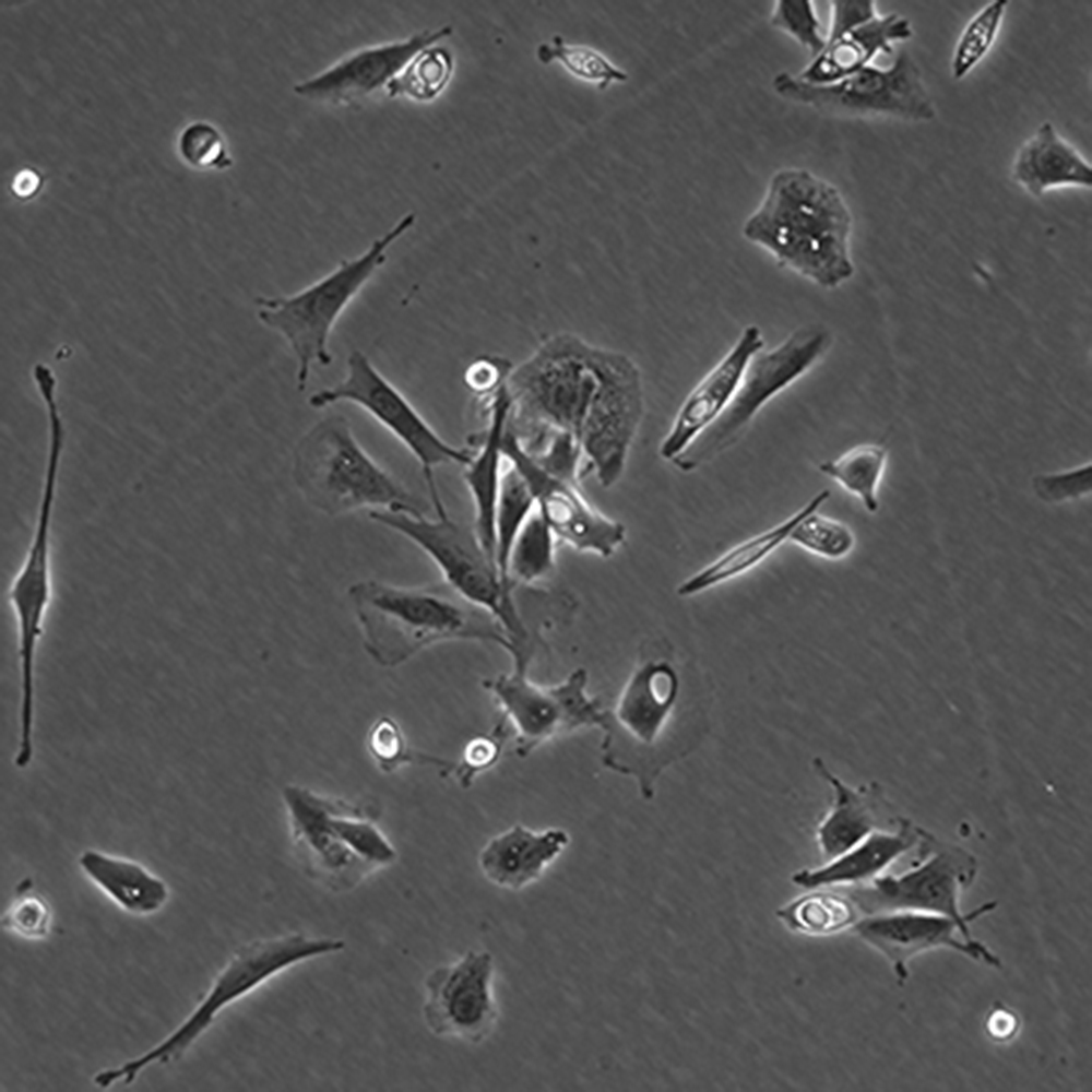 待細(xì)胞生長(zhǎng)狀態(tài)良好時(shí),可進(jìn)行細(xì)胞凍存。下面T25瓶為例;1.細(xì)胞凍存時(shí),棄去培養(yǎng)基后,PBS清洗瓶底1-2次后加入1ml胰酶,細(xì)胞變圓脫落后,加入2ml完全培養(yǎng)基終止消化,可使用血球計(jì)數(shù)板計(jì)數(shù)。2.1000RPM離心5分鐘去掉上清。用血清重懸浮,加DMSO至最終濃度為10%。加入DMSO后迅速混勻,按每1ml的數(shù)量分配到凍存管中,注意凍存管做好標(biāo)識(shí)。本公司按每個(gè)凍存管細(xì)胞數(shù)目大于1X106個(gè)細(xì)胞凍存。3.將凍存管置于程序降溫盒中,放入-80度冰箱,至少2個(gè)小時(shí)以后轉(zhuǎn)入液氮灌儲(chǔ)存。記錄凍存管位置以便下次拿取。 |