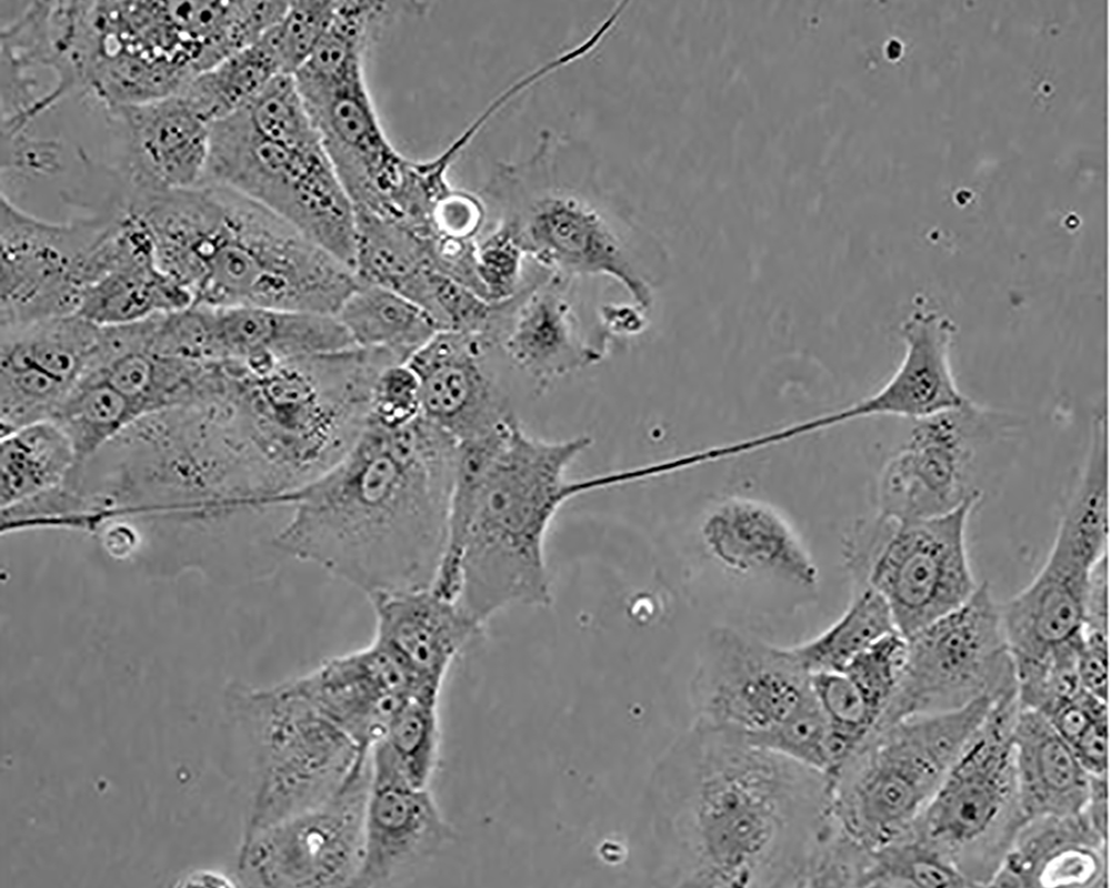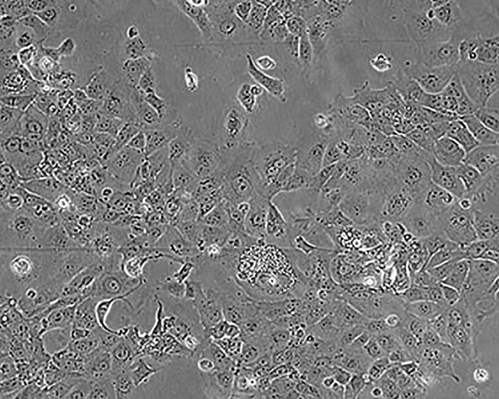 如果細胞密度達80%-90%,即可進行傳代培養。1. 棄去培養上清,用不含鈣、鎂離子的PBS潤洗細胞1-2次。2. 加2ml消化液(0.25%Trypsin-0.53mM EDTA)于培養瓶中,置于37℃培養箱中消化1-2分鐘,然后在顯微鏡下觀察細胞消化情況,若細胞大部分變圓并脫落,迅速拿回操作臺,輕敲幾下培養瓶后加少量培養基終止消化。3. 按6-8ml/瓶補加培養基,輕輕打勻后吸出,在1000RPM條件下離心4分鐘,棄去上清液,補加1-2mL培養液后吹勻。4. 將細胞懸液按1:2到1:5的比例分到新的含8ml培養基的新皿中或者瓶中 |